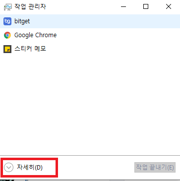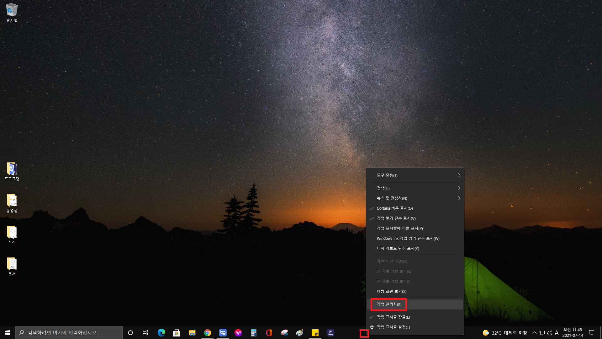 1. 하단 작업표시줄 우클릭 -> 작업 관리자 클릭