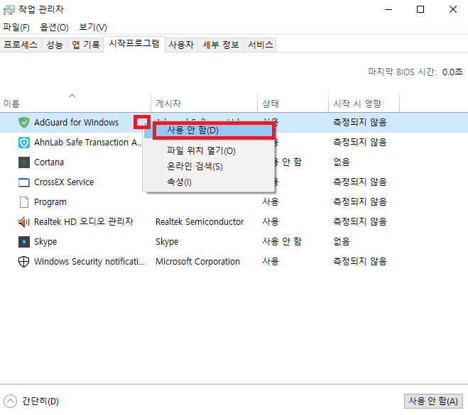 윈도우10 시작프로그램 정리, 등록 및 삭제하는 법(간단설명)
