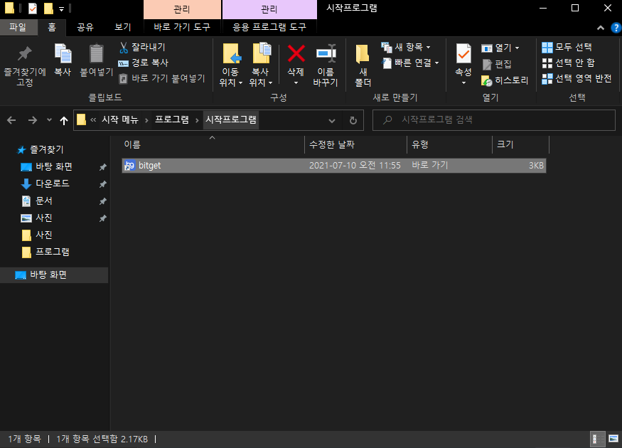 3. 해당 폴더에 실행하고 싶은 프로그램 바로가기 옮기기