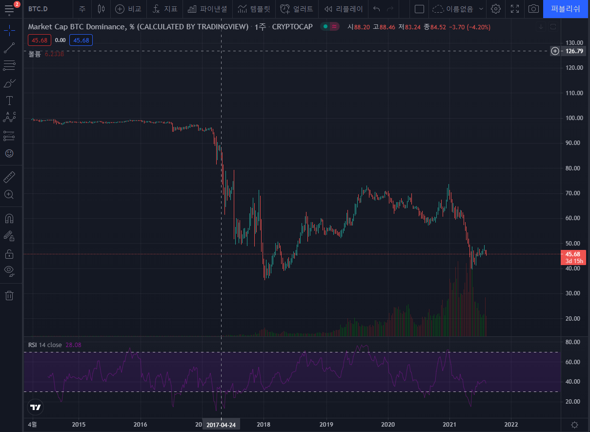 이렇게 비트코인 도미넌스를 참고해서,