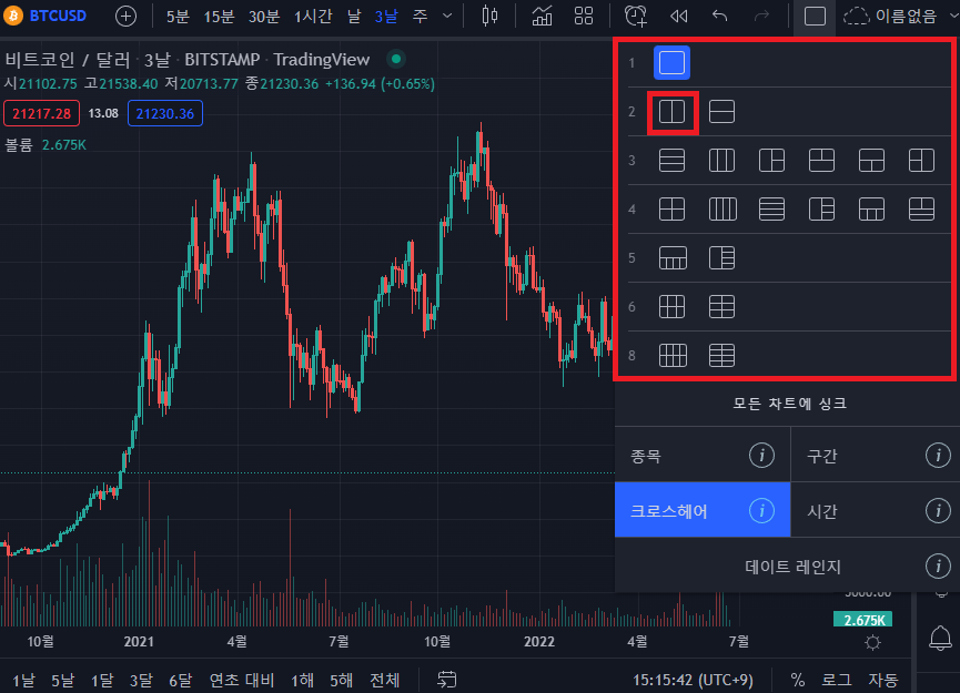 트레이딩뷰 비트코인 차트 여러개 보는법 간단정리