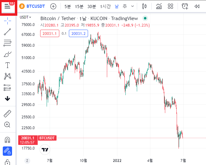 아무 차트나 켠 다음, 좌측 상단에 있는 메뉴 버튼을 누르자.
