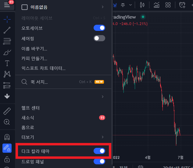 그렇다면 트레이딩뷰에서 다크모드를 지원할까?